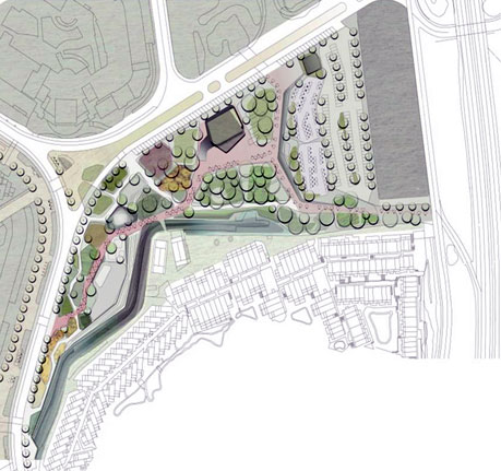 На участке предполагается создание открытого пространства общественного пользования, которое включает зону отдыха и автостоянку примерно на 180 парковочных мест.